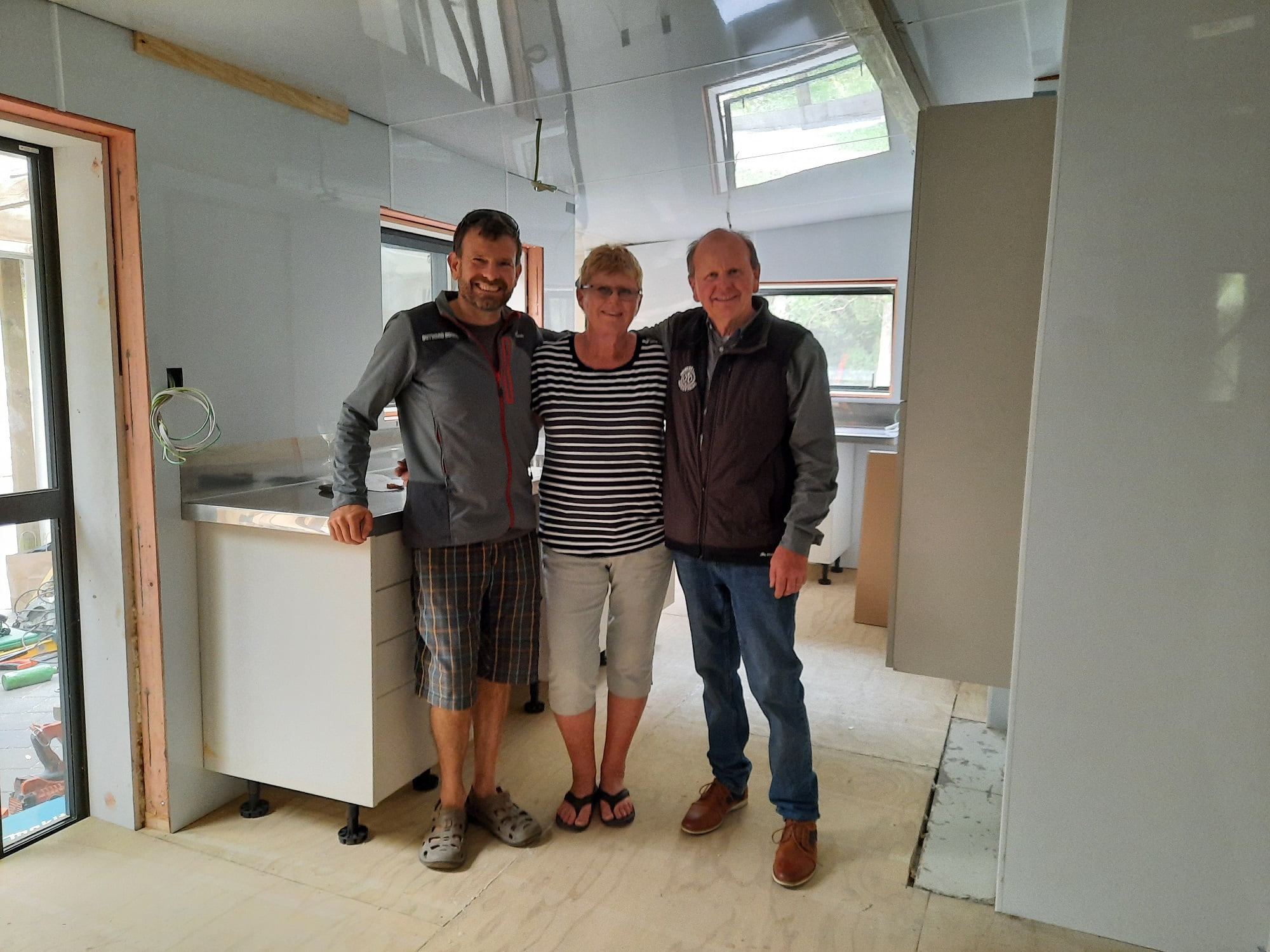 Simon Graney - OB School Director, Marg Robinson, and Vic Koller - OB Maintenance Manager in the new kitchen at TK.