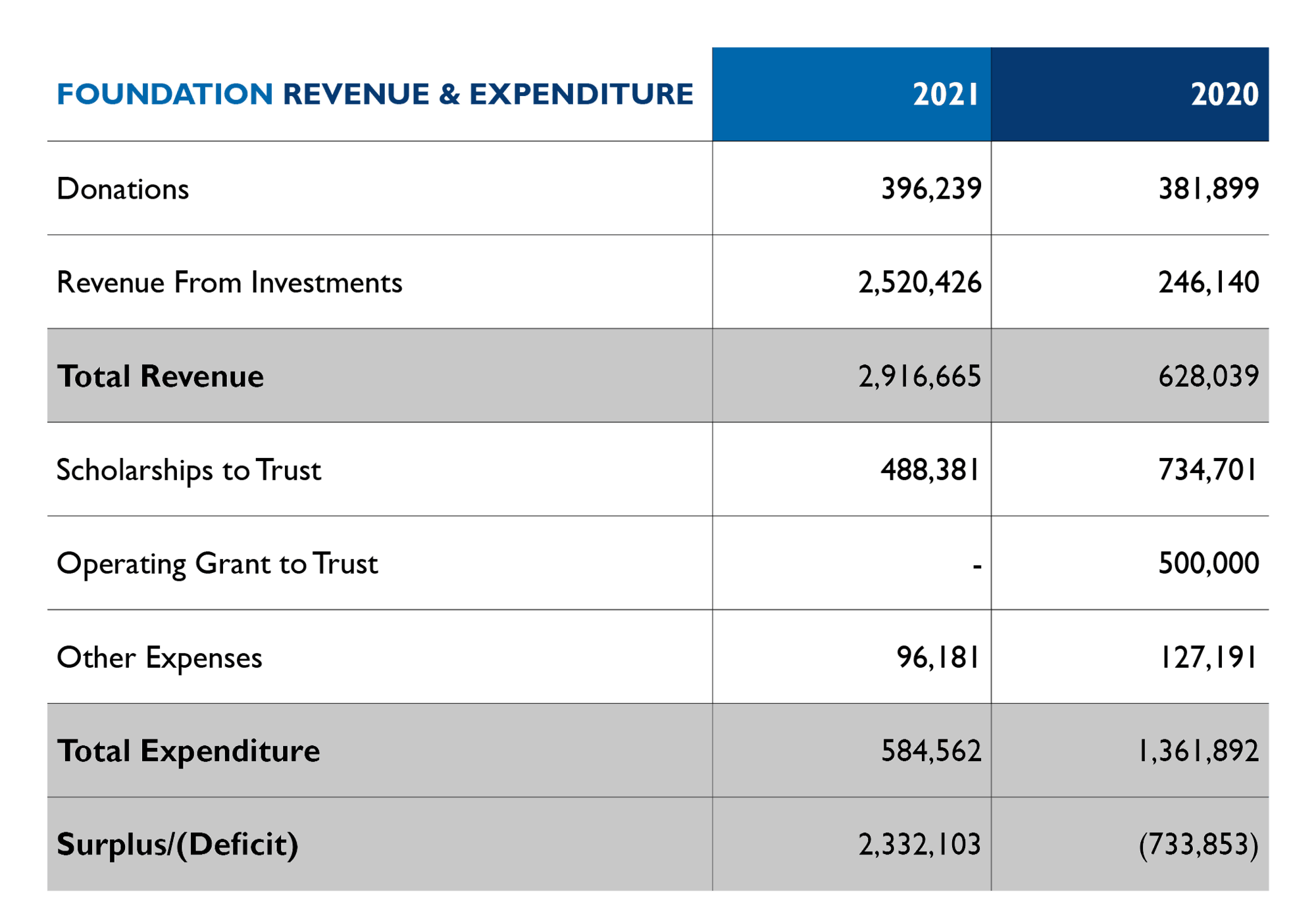 Outward Bound Trust of New Zealand Foundation, incorporated in October 2001 under the Charitable Trusts Act 1957, is the funding arm for the Trust. Income and capital from the Endowment and Special Funds held within the Foundation are available to the Trust for financial assistance of student scholarships, and for operational grants in support of running Outward Bound courses.