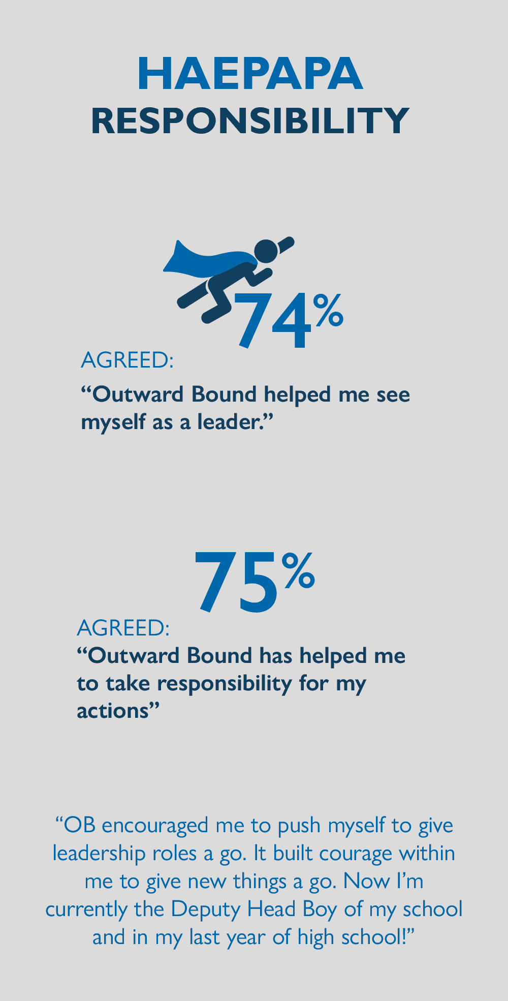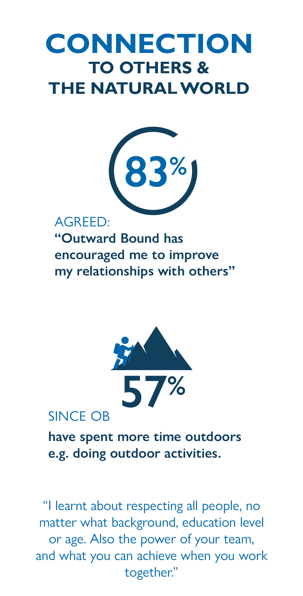 So in true Outward Bound form, we looked for a solution and changed how we asked the question. We now ask using a 5-point scale: 'Far too hard' to 'Far too easy', with 'Just right' in the middle.